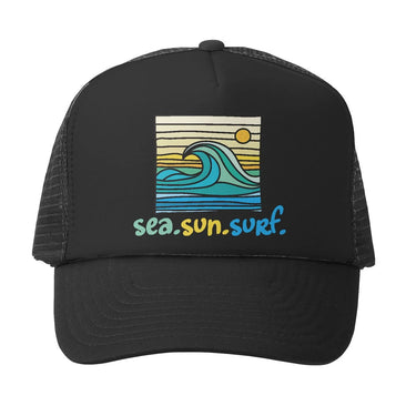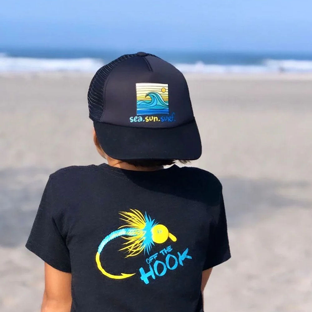 A perfect trucker to add some style to your little one! The sea, sun, surf trucker cap for toddlers is simple and colorful.