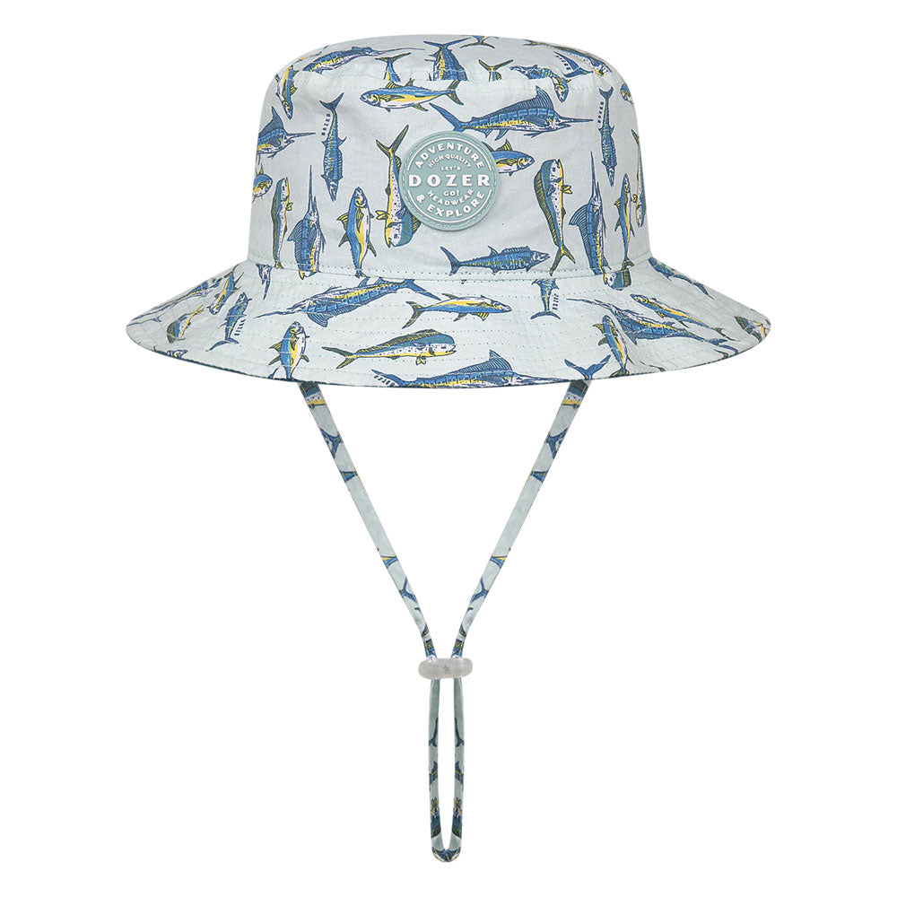 The Kooringal Boys Karuah Bucket Hat is a wonderful style for your little one who loves the water. Featuring a beautiful and varied fish print, it also comes with a removeable and adjustable chin strap, and is reversible as well!