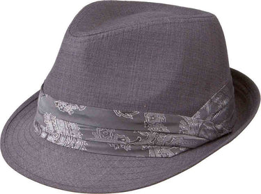 The Kenny K Gray and Silver Fedora Hat is a flashy take on a classic look. This stunning hat features a 1.5" brim, 4.75" crown, and an intricately designed ribbon light gray band with silver. It is made with 65% polyester and 35% viscose.