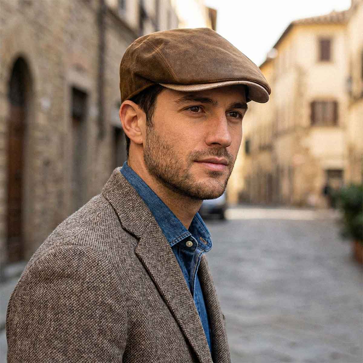The Saint Martin - "Torino" Ivy Cap looks and feels like a leather Ivy Cap, but do not let that fool you! Made in Italy from 100% Wax Cotton this hat is lightweight, easy to wear and breathes. Still looking like a leather hat, it pairs easily for almost anything in your wardrobe, if it be formal or casual, this will fill your head wear need. To top everything off, the floral inner lining really gives this hat the look and feel you come to expect from a high quality Ivy Cap.