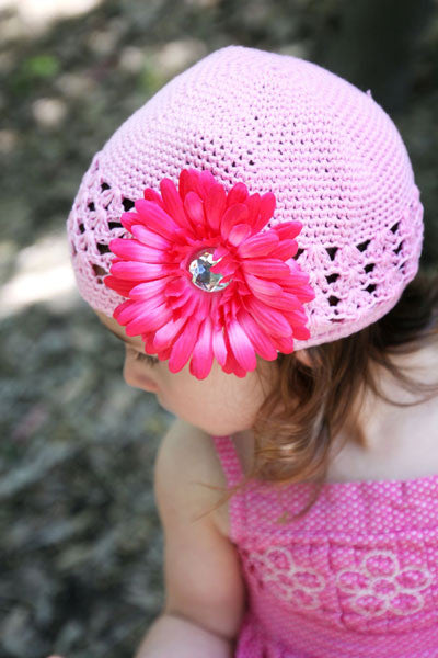 Baby Bezak's caps for little girls have been a hit ever since we received them in our stores. The colorful variety of knit caps with cute flowers and gems really add that extra flair to your little one's outfit. They are recommended for ages 4 months to about 5 years and have elastic around the edge to accomodate sizing.