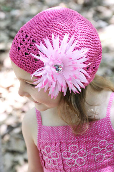 Baby Bezak's caps for little girls have been a hit ever since we received them in our stores. The colorful variety of knit caps with cute flowers and gems really add that extra flair to your little one's outfit. They are recommended for ages 4 months to about 5 years and have elastic around the edge to accomodate sizing.