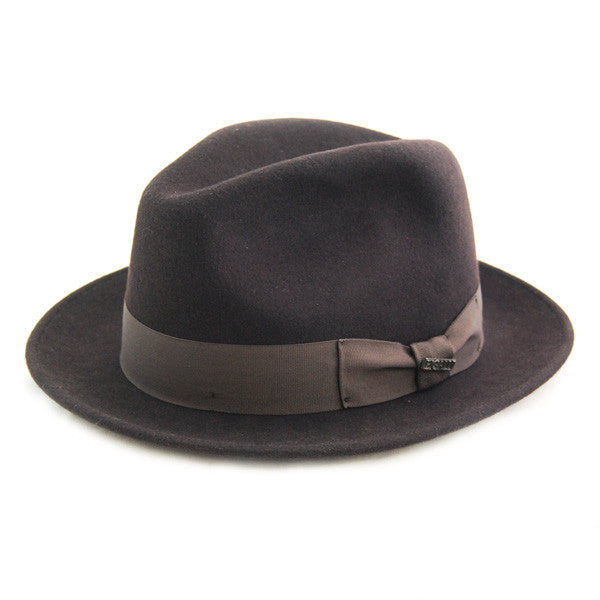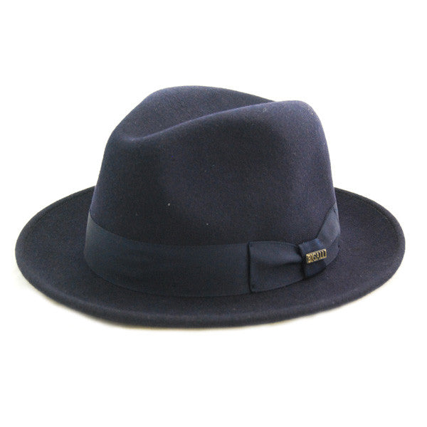 The Bigalli Milano wool felt fedora hat has both style, and quality. Coming in a variety of colors, you are sure to find the color that fits your needs! The brim measures approximately 2", and at the base of the 5" crown is a grosgrain band that matches the color of the hat.