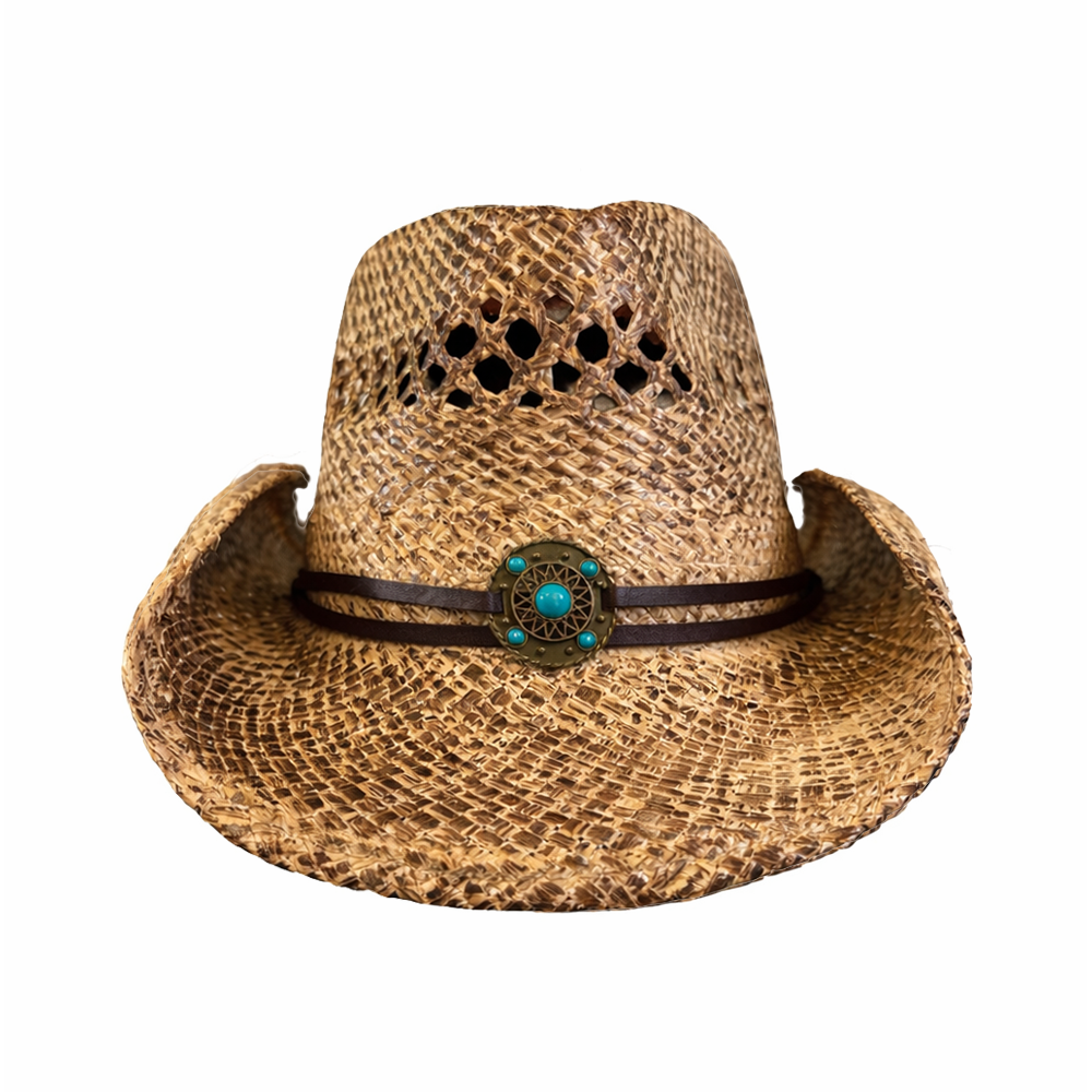 The Bullhide Hats Anytime Raffia Cowboy is here to help you look great while staying comfortable all season long. Made from natural raffia with a beautiful air-brushed finish, this hat brings warmth and character to any outfit. The 3½" brim shields your face from the sun without feeling heavy, making it perfect for long days outdoors. Available in S-M and L-XL sizes, it's designed to fit different head shapes so everyone can find their perfect match. Raffia's lightweight, breathable construction keeps you cool when temperatures rise, and it's built to last through countless adventures. Whether you're working the land or enjoying casual time outside, this cowboy hat supports your style and comfort.