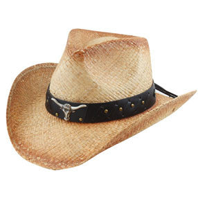 California Hat Company - Raffia Western Hat With Long Horn Conch