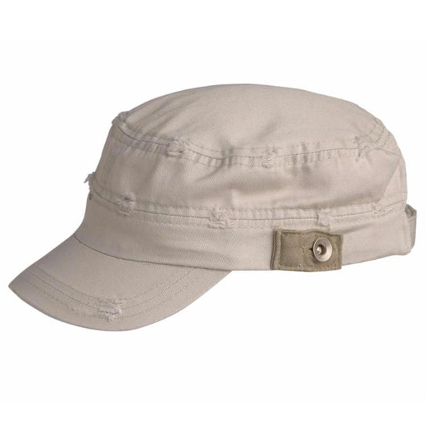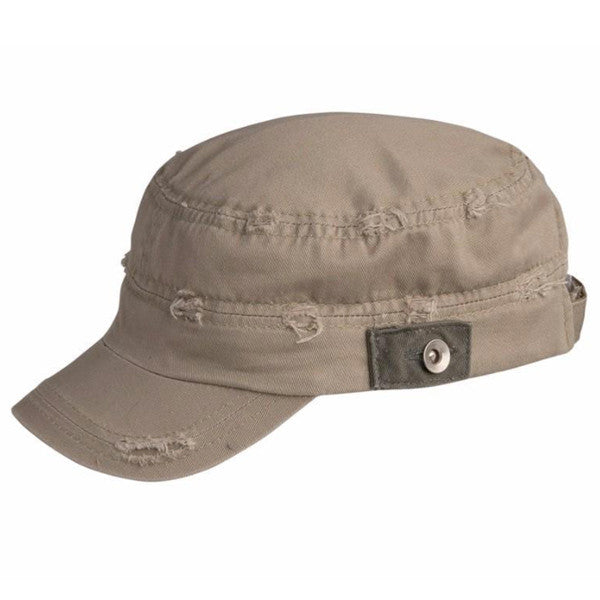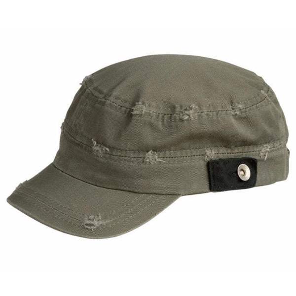 The Conner Distressed Army Fatigue Cap is your standard military style cap but with a unique distress wash. Don't be alarmed, this hat only appears old and worn from adventure because of the styled distress garment wash. A great companion on any and all outdoor treks, the distress Army Fatigue Cap shows your merit.