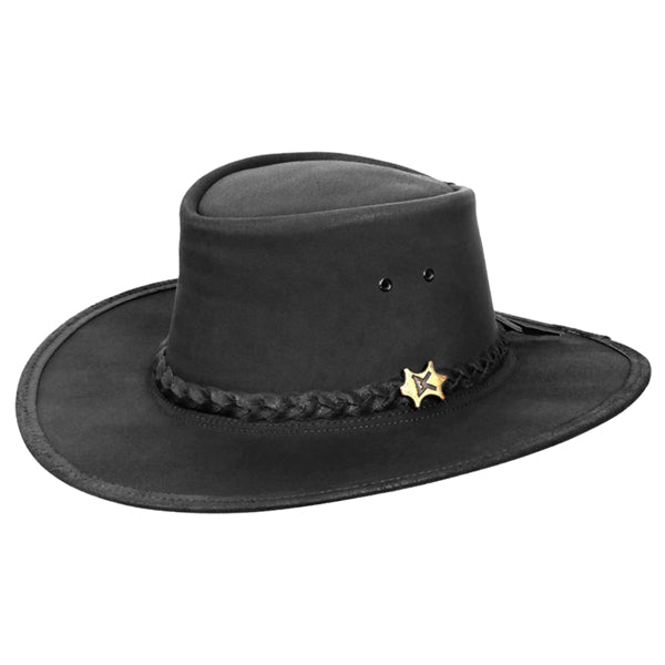 The Conner Stockman Oily Australian Leather Hat is a beautifully crafted hat made from steer hide leather. This well made style features a shapeable 3 inch brim, a crown height of 4.25 inches and UPF 50+ protection. This hand made Australian hat is both stylish and cool while still being great for the outdoors!