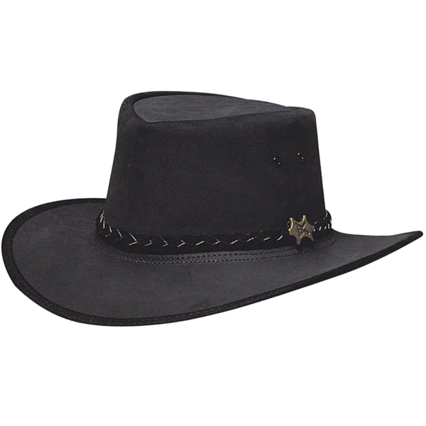 - Down Under Leather Outback Hat: If you like outback hats, you'll love this durable, stylish hat made from UPF 50+ buffalo leather. This high-quality hat features a braided leather hatband and comes in black and dark brown color options. It's also easy to travel with, thanks to its crushable structure. Whether you're planning a hike in the mountains or a night on the town, this fashionable outback hat is a great choice.