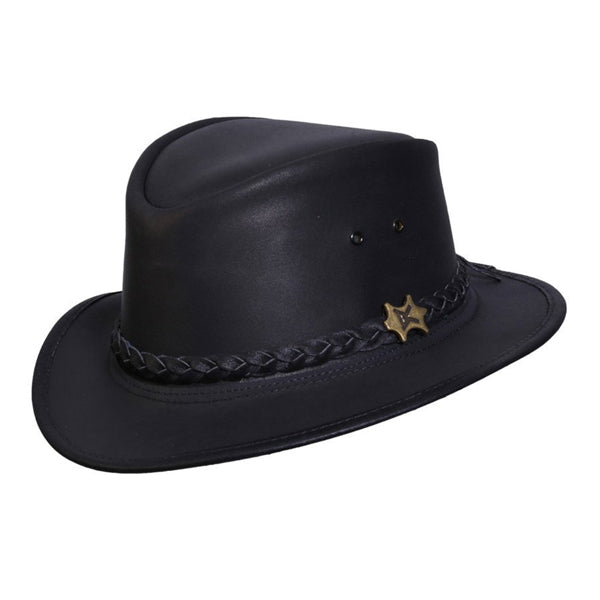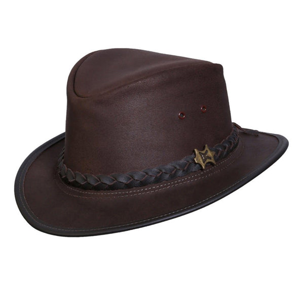 - Down Under Leather Outback Hat: If you like outback hats, you'll love this durable, stylish hat made from UPF 50+ buffalo leather. This high-quality hat features a braided leather hatband and comes in black and dark brown color options. It's also easy to travel with, thanks to its crushable structure. Whether you're planning a hike in the mountains or a night on the town, this fashionable outback hat is a great choice.