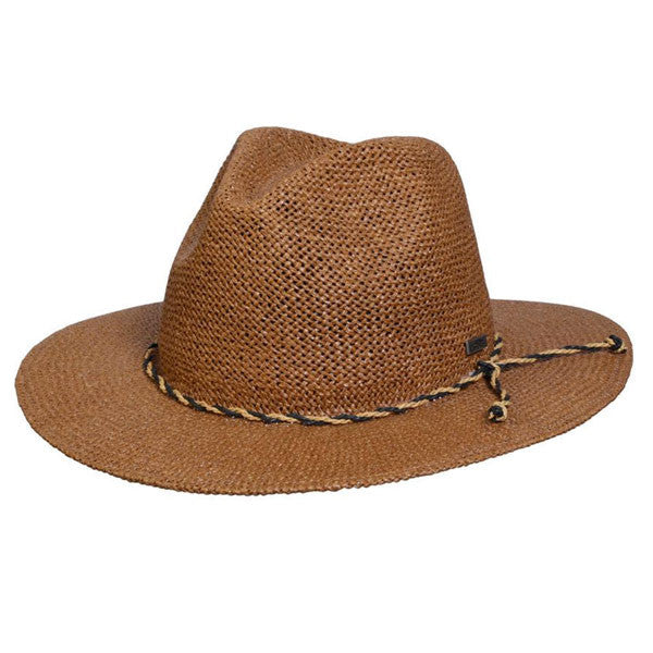The Conner Yogi Beach Hats is a cute modern style great for anyone with its stiff toyo straw material and great coverage. This hat has a braided black and brown band around it's high crown, giving it a unique look. This well made hat is a sleek modern design perfect for the beach, shopping, or your next music festival!