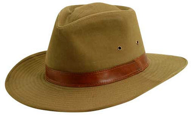 The Dorfman Pacific cotton outback hat is sure to be your new go-to before heading out on an adventure. Order your own outback hat with a leather band today to showcase your style on your next hike.