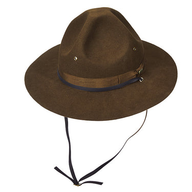 The Dorfman Pacific wool felt campaign hat resembles a style associated with a Canadian Mountie. This great design is durable, comfortable, and the adjustable chin strap helps to make it secure. The 3" brim will help to keep the sun out of your face, as well as protect your neck.