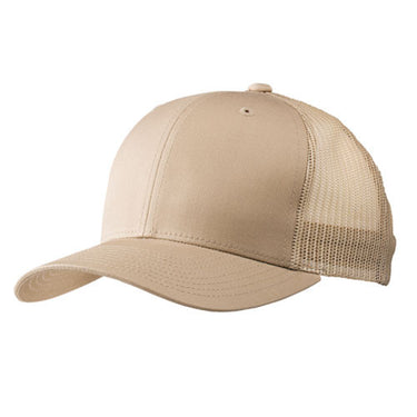 The Flexfit Retro trucker cap is a classic mesh backed baseball cap that is comfortable to wear and looks good on just about everyone. It is a 6-panel cap with buckram front lining, mesh back, and quilted comfort sweatband. It has a 3 1/2" crown with 8 rows of stitching on the visor, a matching under visor, and a plastic snapback adjuster at the back.