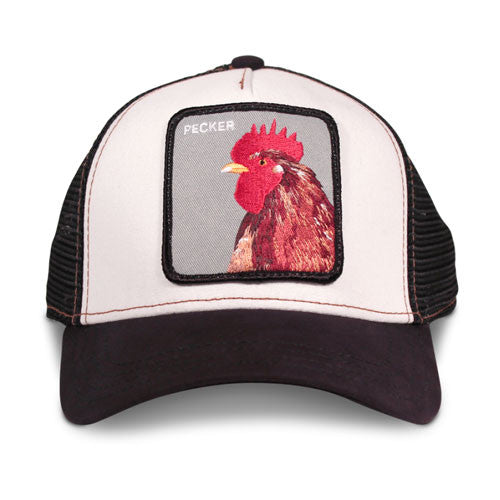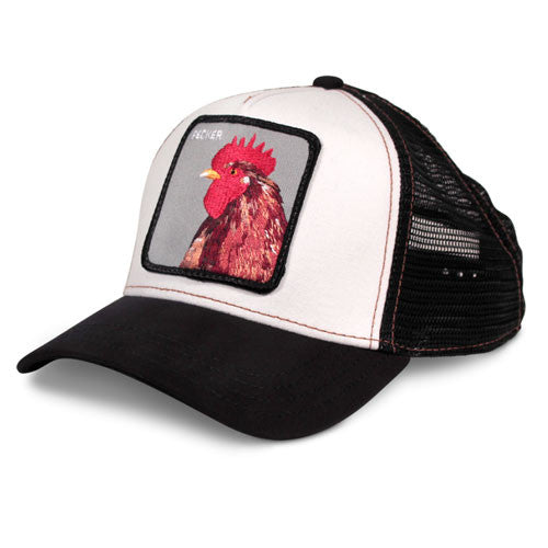 The Goorin Plucker baseball cap is part of Goorin's Animal Farm Collection. A top seller, the front of the cap is constructed from cotton-canvas and features an embroidered close-up rooster profile patch with the words "plucker" scriped at top left. The back of the cap is a mesh trucker-style complete with an adjustable snapback enclosure. Inside the cap is unlined and has a soft, cotton-twill sweatband for comfort.