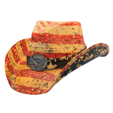Liberty American Flag Straw Cowboy Hat w/ Medallion