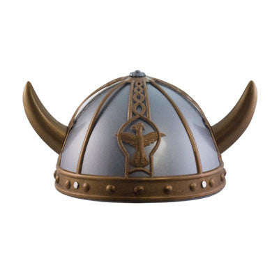 The Jacobson childrens viking hat is the perfect thing for your aspiring viking. Features include simple and durable plastic construction with fake rivets around the base of the crown, eagle logo and additional garnishment, and removable horns.