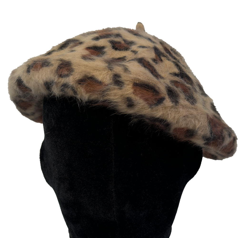 The Jeanne Simmons Angora Cheetah Print Beret will be a beautiful complement to your outfit this fall & winter. Extremely soft and comfortable to wear, it measures 10.5" in diameter and comes with the apple stem top.