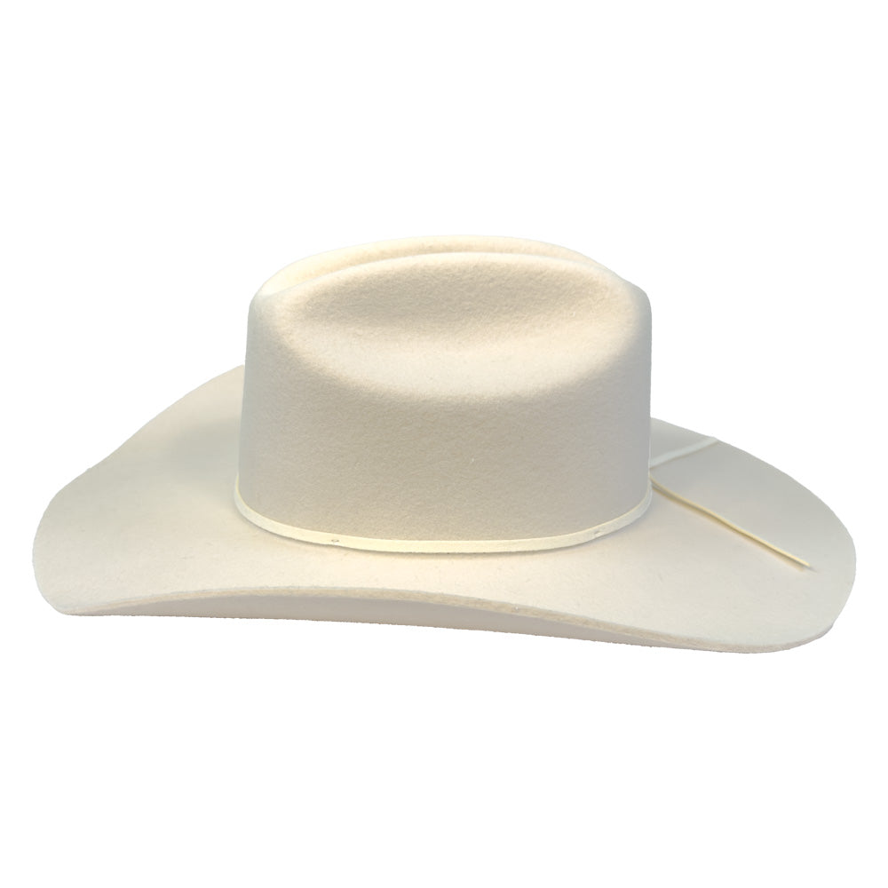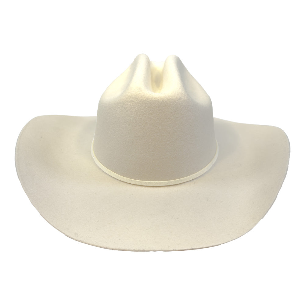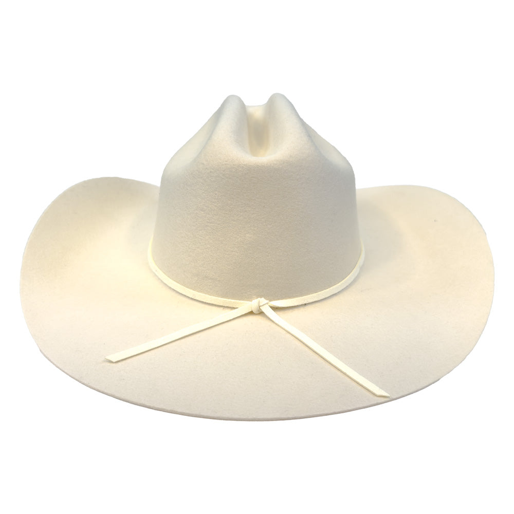 The Jeanne Simmons Cream Cattleman Cowboy Hat is a fine style with quality that can be seen and felt but wont break the bank. Featuring a 3.75" brim, all cream felt including self-same band, and interior liner with size adjuster, this is a sharp style.