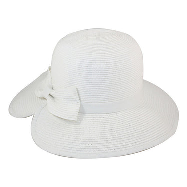 The Jeanne Simmons split brim sun hat is a wonderful style at a great price! Featuring a 3.5" brim, well-sewn paper-braid construction, and an elastic inner-band for accomodative sizing and comfort it's a great grab and go hat for the beach, or just a day out in the sun. The brim is split, then overlapped and sewn and finished with a bow over the top of it.