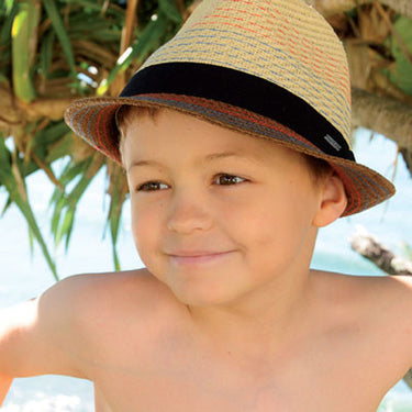 - Koorginal Bora Bora Straw Fedora Hat: The Bora Bora Straw Fedora Hat from Kooringal is easy to wear and a great item to take on trips, due to its easily crushable structure. The crown's base features two lines of colorful beads and an extra black string you can use to adjust the size. The inside of the hat, though unlined, has an elasticized sweatband to help with sizing. The Bora Bora has excellent sun protection, with a UPF rating of 50.