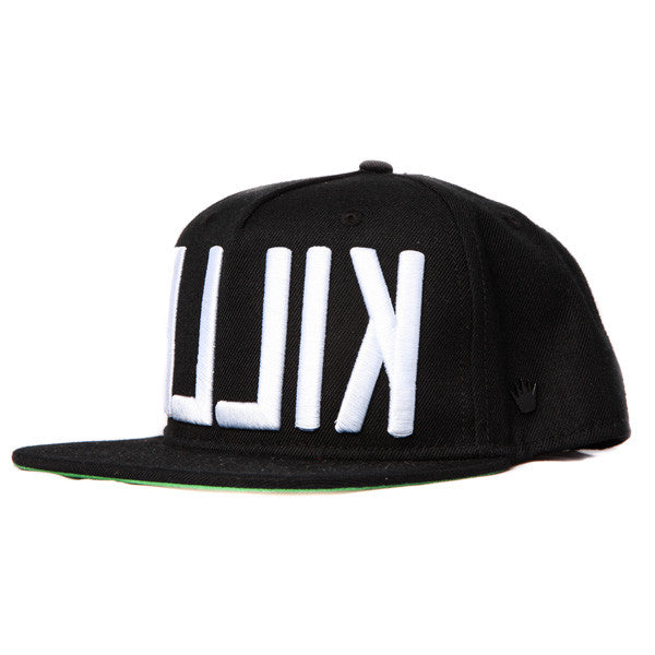 The No Bad Ideas Killa baseball cap is an all black style with the word "Killa" stitched in large bold letters on the front. This unique hat makes a bold statement, and as part of the No Bad Ideas family of products, it features an inner lined stashed pocket that can be used to store small objects.