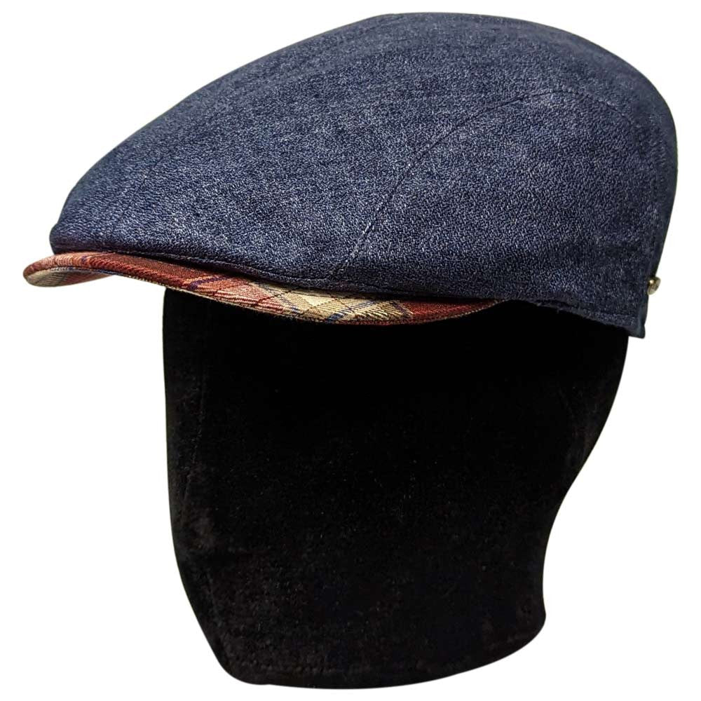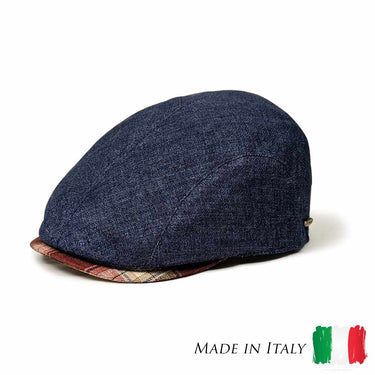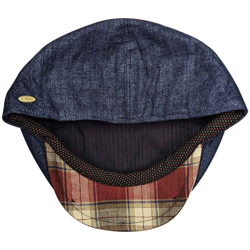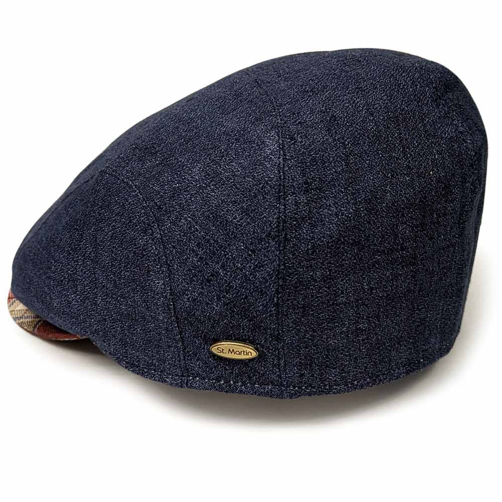 This pure linen driver cap by Saint Martin is easy to wear throughout spring, summer, and fall. Its 100% pure linen outer is dyed an indigo blue to match any wardrobe, whether that's eccentric or minimal. The cap's red and grey plaid short bill is mostly hidden by the cap's iconic driver shape but peaks out just enough to give it some extra, yet subtle, flair. The cap's interior is lined with 100% cotton dyed in a deep navy, matching the exterior in color and comfort. Its pure cotton sweatband ensures a comfortable fit, allowing you to wear this hat effortlessly all day and night. The brass Saint Martin logo on the cap's side adds an extra touch of luxury to an already refined accessory.
