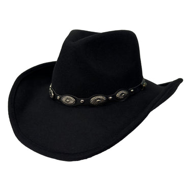 The Saint Martin Concho Cowboy Hat is crafted from 100% wool felt for durability and breathability. The shapeable brim allows for your own personal touch, while the leatherette band with concho trim adds the right amount of western style. Comes with a Saint Martin pin and available in light grey and black. Wrangle up some style!