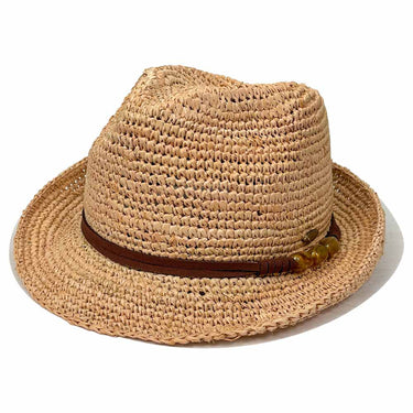 - Koorginal Bora Bora Straw Fedora Hat: The Bora Bora Straw Fedora Hat from Kooringal is easy to wear and a great item to take on trips, due to its easily crushable structure. The crown's base features two lines of colorful beads and an extra black string you can use to adjust the size. The inside of the hat, though unlined, has an elasticized sweatband to help with sizing. The Bora Bora has excellent sun protection, with a UPF rating of 50.