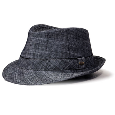 Our Saint Martin Trilby Fedora offers a one-of-a-kind twist on the traditional cotton fedora with its chic cotton and linen fabrics. It features the shape of a classic fedora with beautiful denim-like fabric in addition to tan and black color choices. Whether you'd prefer to stick with a completely neutral color or play it up with our blue fedora, this style is designed to flatter in any form.