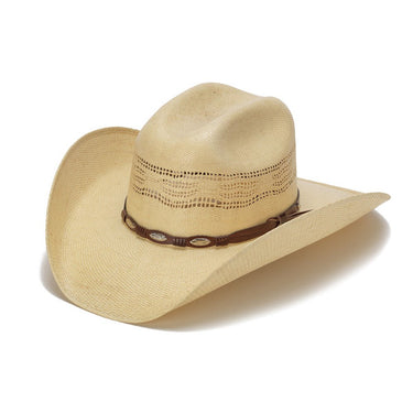 This western style hat is refreshed with a fashionably scalloped leather trim band, accented with wrap ties and elegant shaped concho detail. Keep your cowboy or cowgirl head cool with the vent holes throughout the crown of the hat. You can also bend the side brims to suit your taste, as this hat includes shape-able side brim wiring.