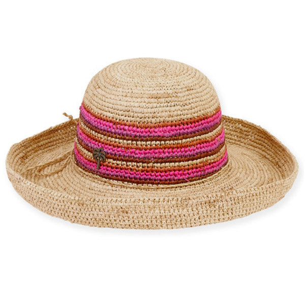 The Sun 'N' Sand Perla Crocheted Up-Brim Hat is a beautifully crafted women's bucket style hat, woven from a soft, comfortable, and sturdy straw. This great look, with its fun and different colorful stripes, is perfect for going to the beach or laying by the poolside!